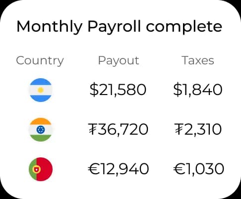 Pay contractors and employees in 190+ countries – with local currency support, tax compliance, and zero hassle